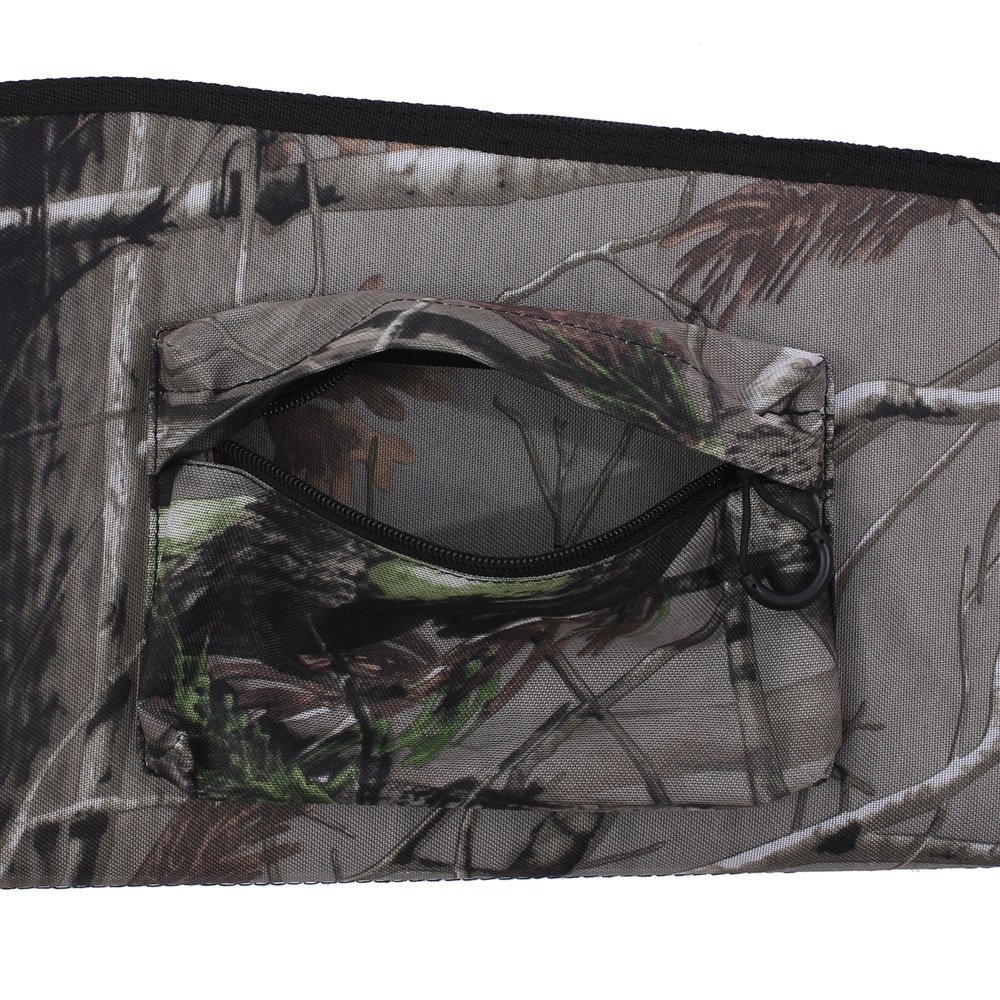 3.Extra pouch: Rrifle bag has a zipper closure outside can storage choke tube ,snap cap ,hunting license,phone,coins and so on.